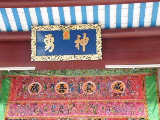 石门上方竖刻“武圣宫”三字庙额,忠义仁勇,三教尽皈依正真聪明心似日悬天上,