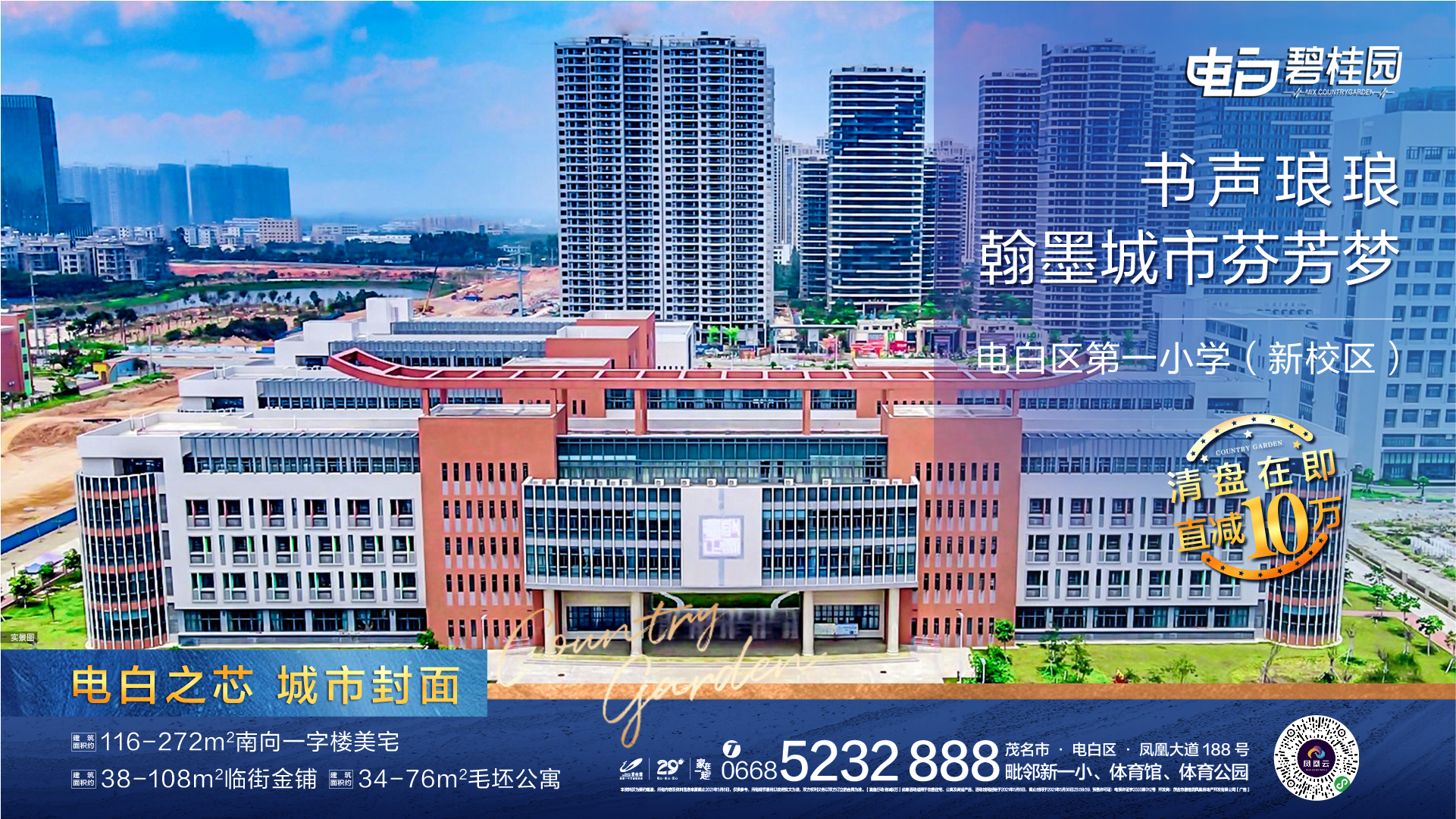 — #电白碧桂园 — ✨电白之芯 城市封面✨ 选择电白碧桂园 与城市主场同行 清盘在即 直减10万 ☎热线:13071668325(广告)