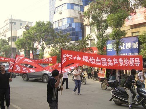 县委书记落马群众打横幅庆祝类别:国内新闻 作者:湘纪 原创 浏览量:2961  发布时间:2009-10-30