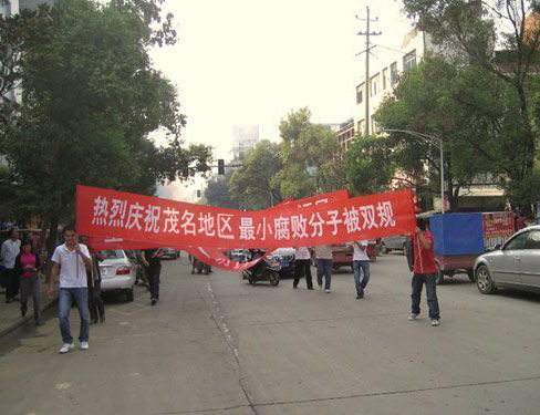 。你是不是想电白的人民也上街打着横幅庆祝?