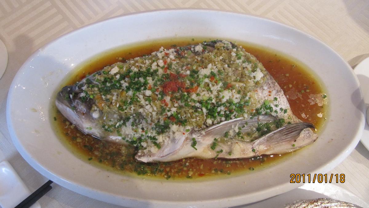 今晚的菜肴:剁椒鱼头、膏蟹粉丝、蒜苗炒鸭、