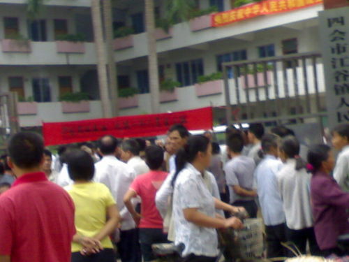 广东四会三百请愿农民镇府门口搭灶做饭(组图)