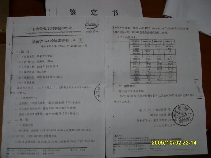 然而,令梁瑞佳失望的是,直到2008年10月10日,电白县公安局才将亲子鉴定的样本送到省公安厅做法医学鉴定。去年10月27日,鉴定结论做出,但直到今年3月初,梁瑞佳才首次从电白县公安局得知结论。