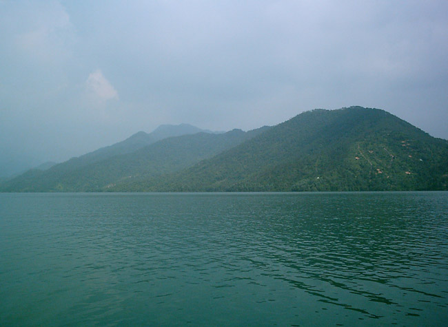 中间有两个天然小岛,浮于水面。大雾笼罩,若隐若现,好似两个披着轻纱,姗姗而来的少女。岛上树木茂密,绿树成荫。温度比周围低6℃,建有别墅、宾馆,成了人们避暑、疗养、会议、旅游的理想场所,库区面积达7000多亩,蓄水量约1.15亿立方米。泛舟遨游水面,朔源而上,尽领略沿途村寨、别墅及环山之层林、奇石、怪岩、流泉、飞瀑风光,犹如进入另一世界之中,愉悦之感油然而生