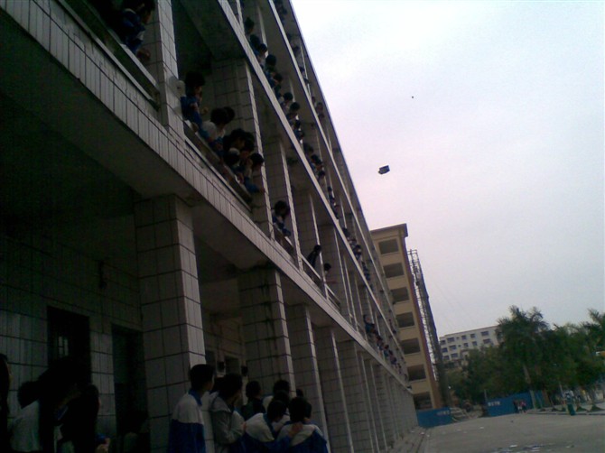 果然、不负众望,在初三教学楼四楼上飘飘地飞下许多许多红色的纸片,本猜测是宣传单,没想到,竟然是 “一百块的冥币”