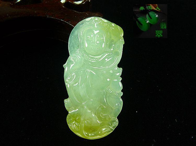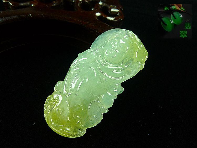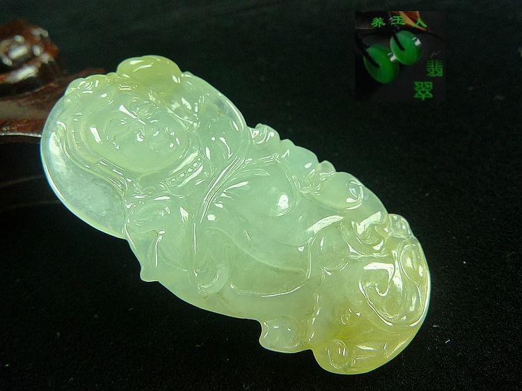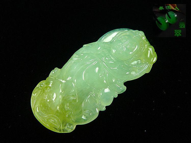 宝贝说明:冰种起胶荧光!浅绿带黄双彩!手工雕刻精致!完美无瑕!