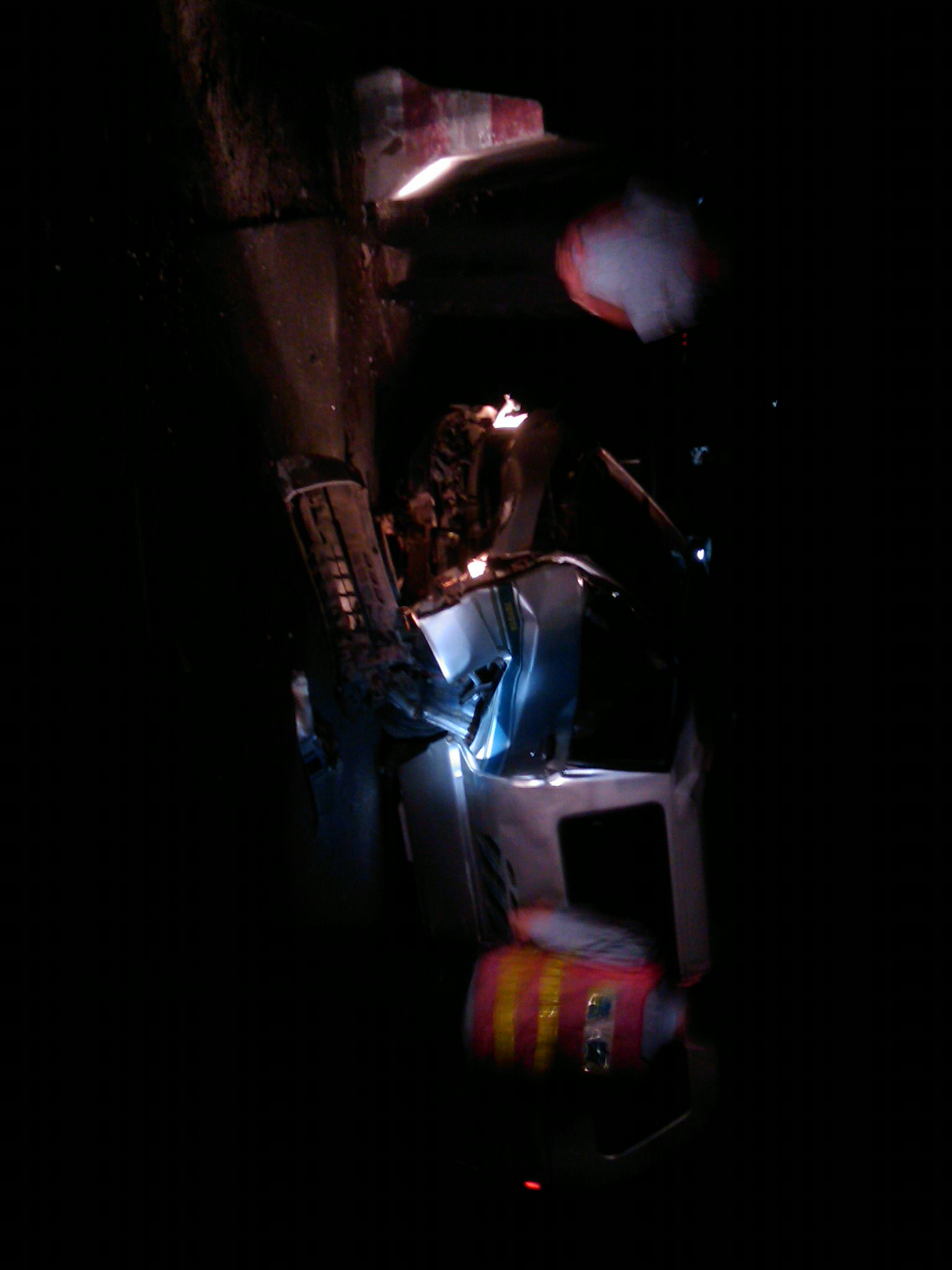 2010年5月15日凌晨12点30分左右,一辆灰色小霸王车由广州至湛江方向行驶至电白树仔镇卫生院路口时,突然撞向中间防护拦,车头严重损坏,司机抛出车身外昏迷在公路上。树仔派出所所长梁浩文正在此路段巡逻,发现这宗严重的交通事故后,立即到现场实施救助,争取第一时间救助伤员,并及时向有关部门报告情况。现场图片附!