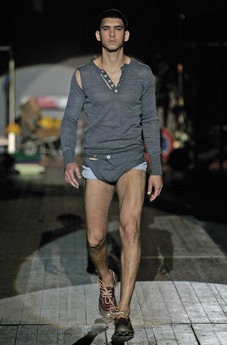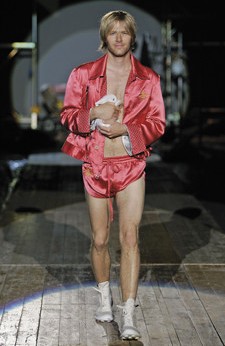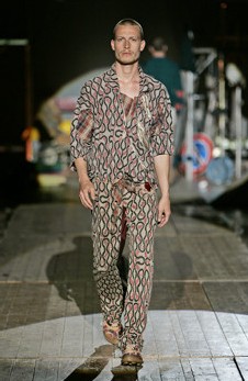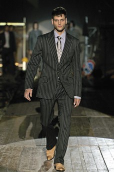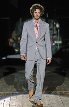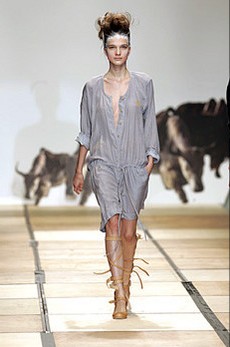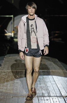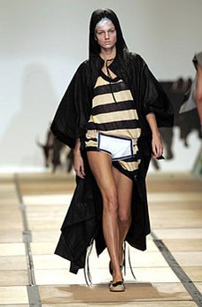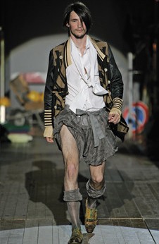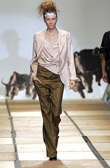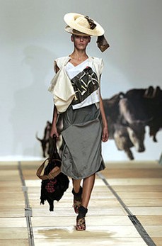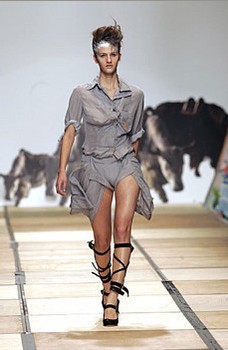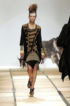 身为"朋克教母".vivienne westwood的创作灵感多数来自于反传统.恋物狂.英伦历史.街头文化的年轻人借着离经叛道的装扮来宣泄内心的不满.而在这样的理念与触动下,皮革,扣针,长拉链,格仔都被作为重要元素的融入设计,整体感觉帅气而颓[attachmentid=16879]晚装: