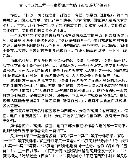 校 校董大人 博士生 注册 2005-09-04 消息 1,346 反馈评分 3 点数 61 2010-05-22 #3 也不能说人家周大炮是没文化之人吧,起码他都是华师出身,在大学工作过的,我等常在论坛混的电白教师在这点上应该是自叹不如的。