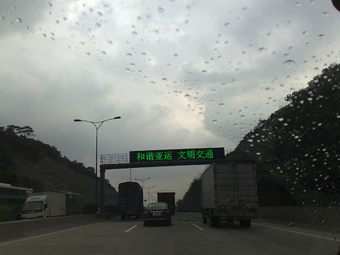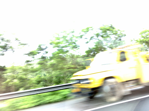 一辆大货车翻倒在路边. 开车速度太快了.拍不到.