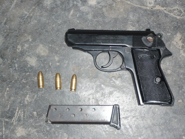 昨晚,黄岭派出所巡逻人员在黄岭镇黄岭东坑村网吧门前,发现站在网吧门口的三名青年形迹可疑,即上前将三人分离进行盘查,在其中一青年身上搜出仿六四手枪一支,子弹三发。