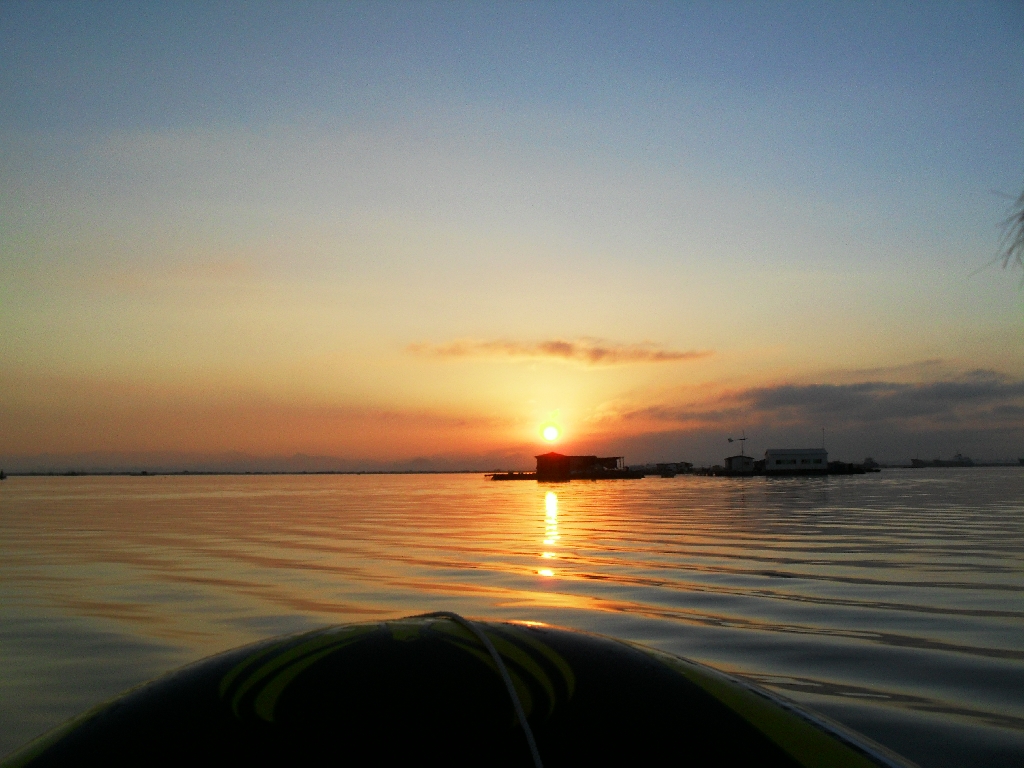 我还是第一次在橡皮艇上欣赏日出~感觉不错!