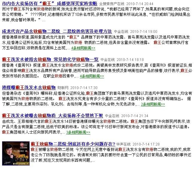 二恶烷在任何洗发水中都可以检测到,只是含量多或少而已。很明显,这次霸王是被人搞了,估计是宝洁。霸王从市场细分入手,成功打破了宝洁在中国洗发市场的垄断,是个民族英雄。静静围观霸王接下来的危机公关……