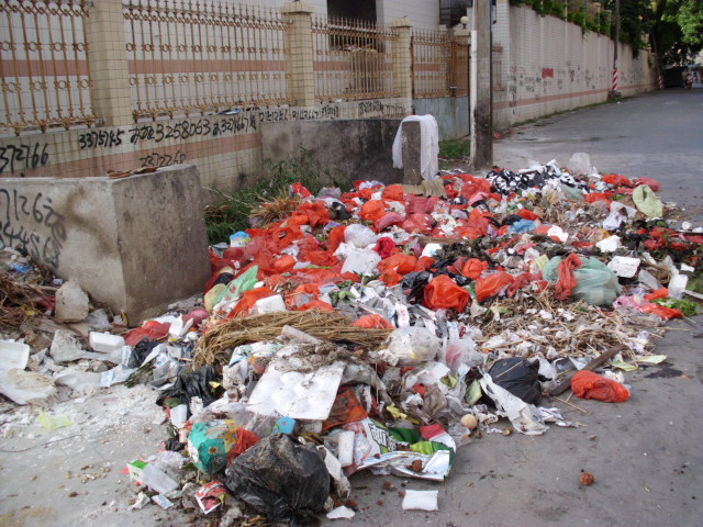 国民素质普遍偏低,已经不再是一时两时就可以解决的事情的了。现在大多数的情况都是这样,即使你是在那里写了不准乱扔垃圾或者是罚款之类的话的,90%的都是给扔了的,而且打电话给环卫部门,他们的处理方法和处理速度也是令人难以接受的。所以,还是....(不知道怎么办)
