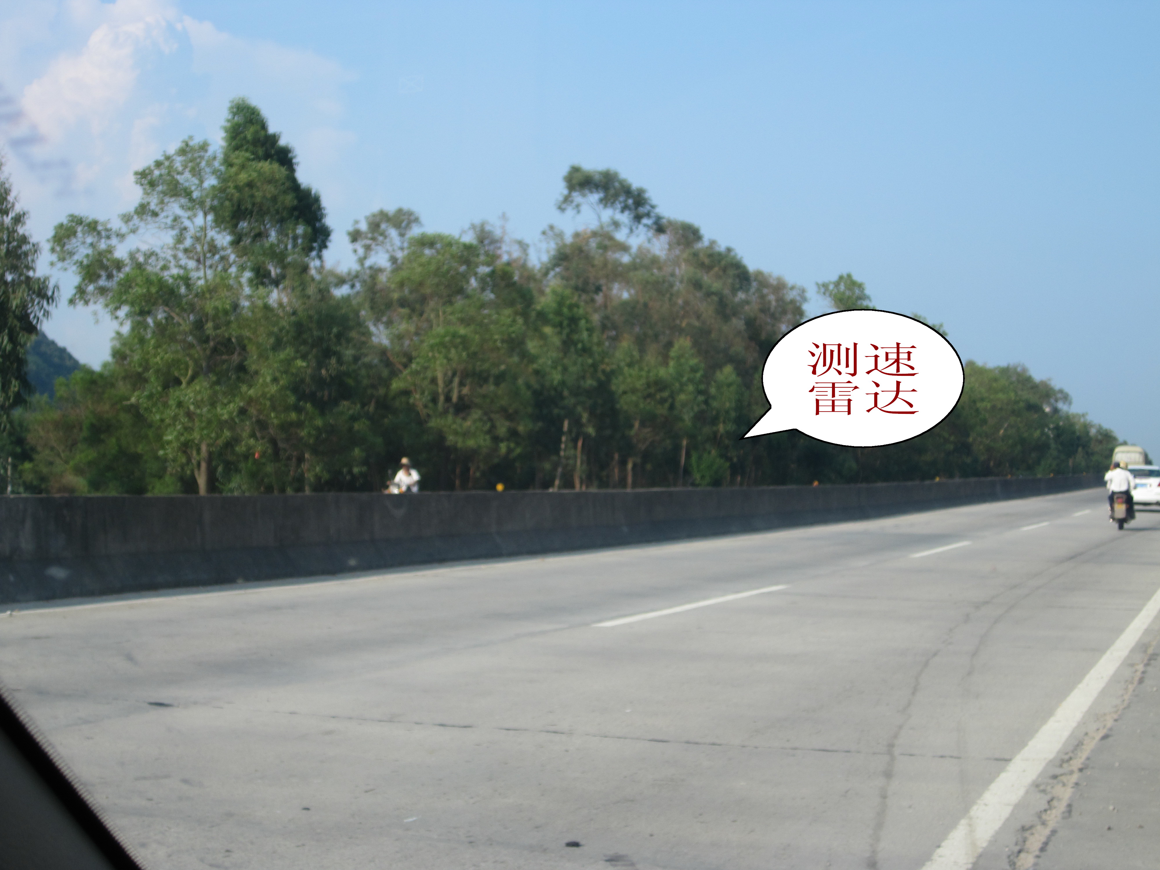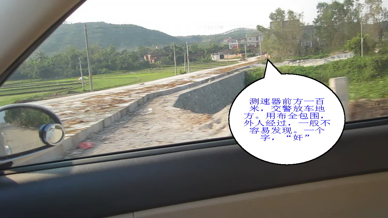 你要知道,我拍的照片是反复几次来回才照到的,又不敢停住车拍,一边左手开车(30速左右)一边右手拍,根本就是一件好危险的事,分分钟出事;而且如果那时交警出现,到时未知又会发生什么事,你知啦!电白交警唔系人,狗急都会跳墙。打我一锅,拖你车,甘又唔抵啦!