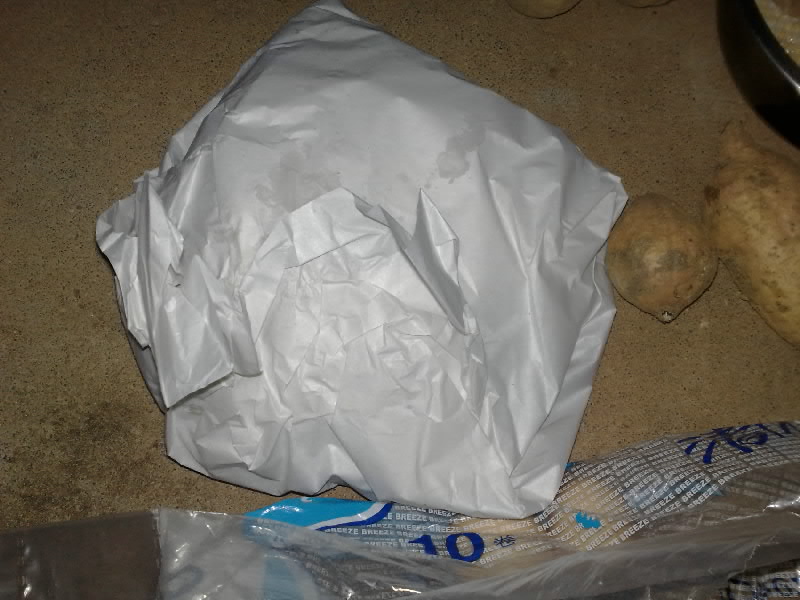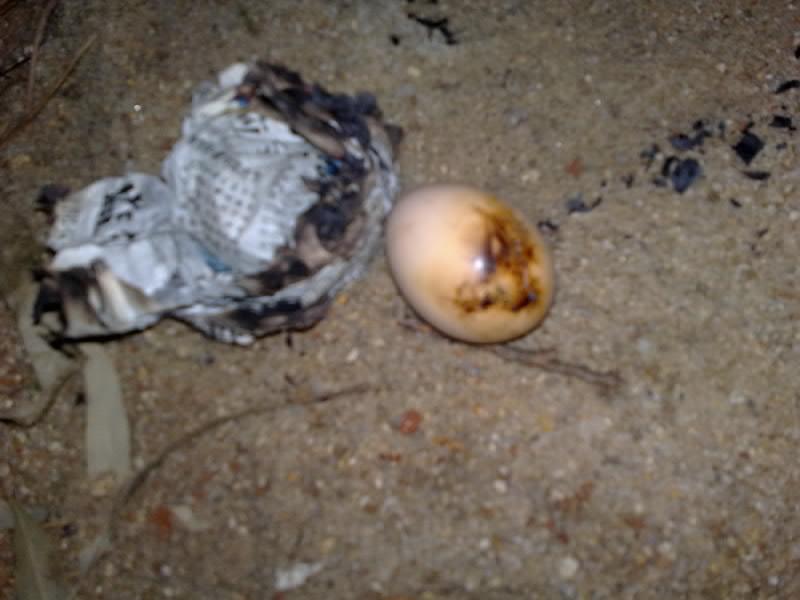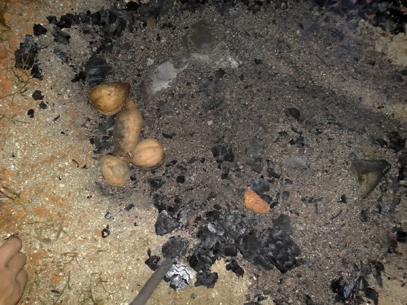 开始放鸡和番薯鸡蛋下去用沙盖住