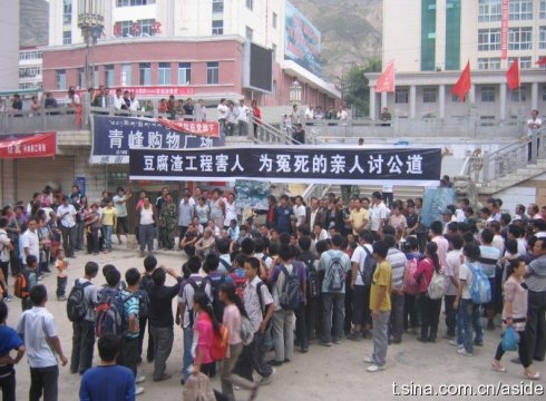 昨天上午,舟曲的村民们当着舟曲县长的面,把从拦洪坝上取样的水泥块,用手一捏,全成了面粉状。县长说,我们还要鉴定。下午他们在县政府广场上拉起横幅,三点多,县长出来劝散村民,并说,拦洪坝的工头已经被控制起来了。