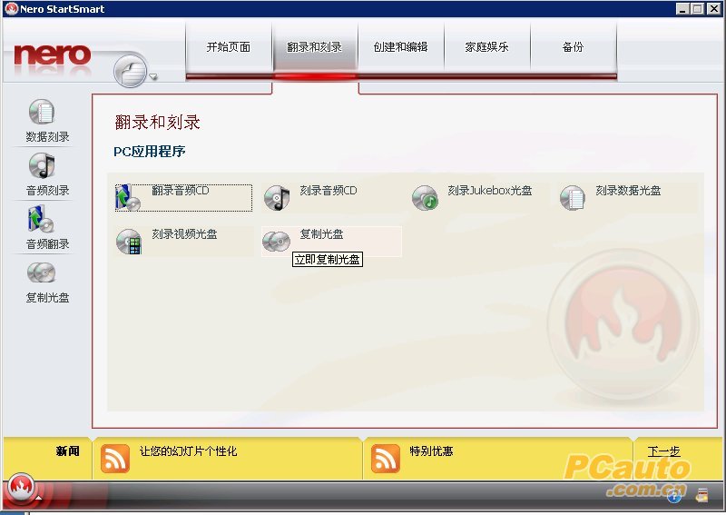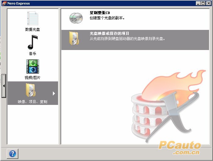 对于情况4、7,直接用NERO的镜像刻录功能即可,如图,先打开NERO,选择“翻录和刻录”,再点选下面的“复制光盘”