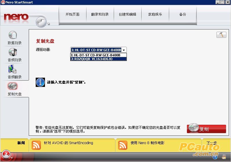 装载后,使用NERO的光盘复制功能