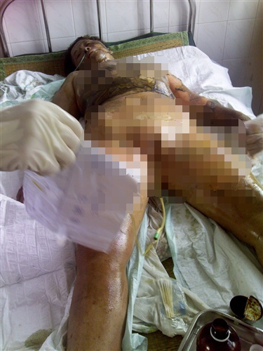 血已经流得够多,足矣唤醒民众。愿大伯在天堂安息。 //@周至美:9月18日凌晨1点10份, @钟如九 刚刚电话我,泣不成声:“医生告诉我,大伯不行了,几乎没气了,正在抢救。”钟如九正在赶去医院的路上。一个老人即将离去。悼!!![蜡烛] @邓飞 @龚晓跃 @王小山 @刘春 @刘长 @张洪峰 @莫名在路上//@周至美:【半夜受骚扰,谈判被搁置。人皮变猪皮,上网开微博。】钟家姐妹昨夜收到骚扰,今天谈判被搁置。去医院竟发现自己的亲属被植猪皮!而之前政府答应给植人皮的,还说医药费不要钟家操心。 @钟如九 无奈之下,相信上访不如上网,开通了新浪微博。钟家大伯已经79,小九说,怕是熬不过去了。