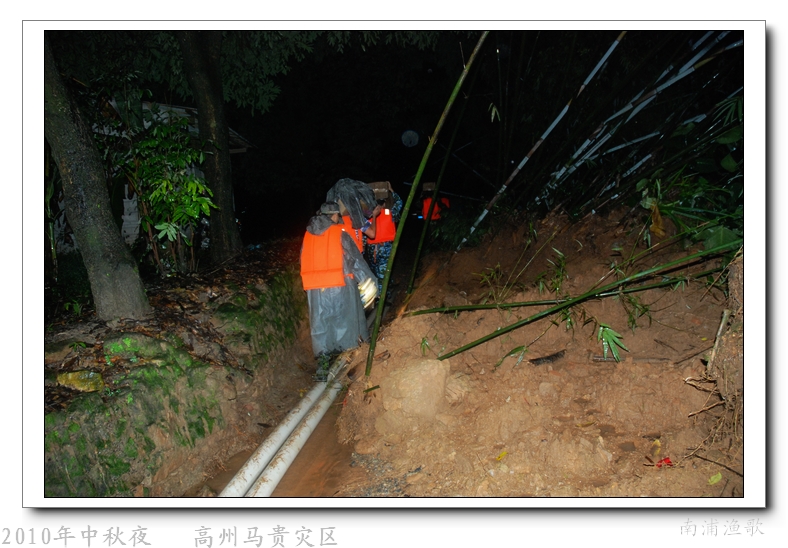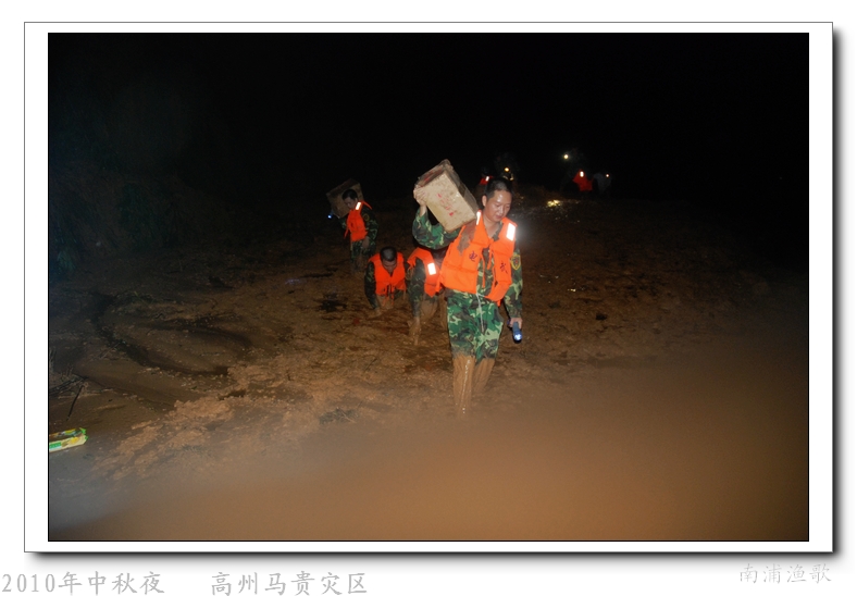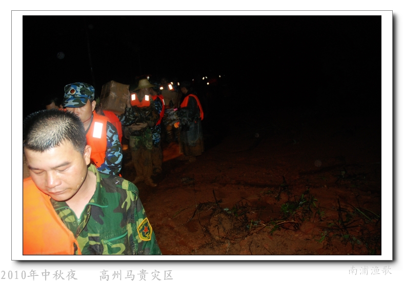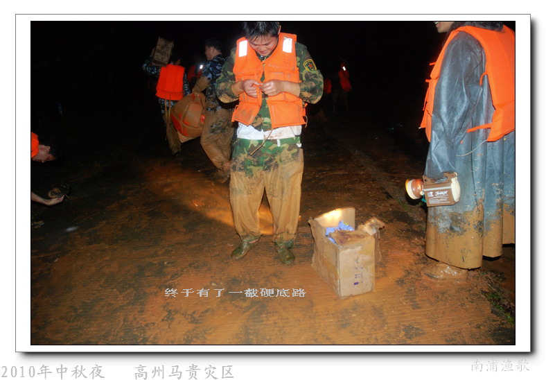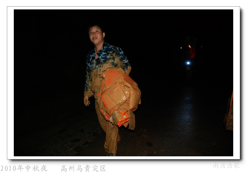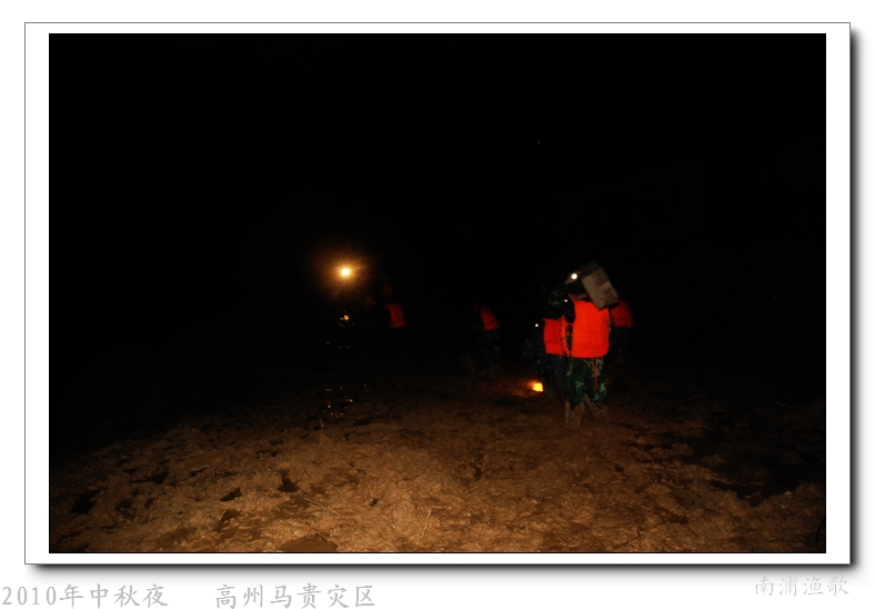 多余的话不说了,有图有真相,10年9月22日下午三点半出发,当全国人民在吃月饼赏月的时候,经过三个半钟的长途跋涉,晚上七点我们到达了马贵。匆匆吃了几口快餐,就受领了任务,送干粮给四公里外的一个学校里受困的灾民。这短短的四公里路全是塌方,其中的艰辛就不说了,还是看图吧