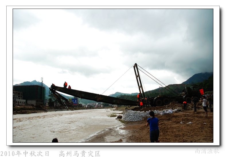 潜 潜水员 小学三年级 注册 2006-08-19 消息 235 反馈评分 1 点数 1 2010-09-25 #72 由于水流太急,第二个桥墩无法放稳,只好再次收起,再把桥向前推进一米,到晚上七点钟,野战钢桥终于将马贵镇南北两岸贯通,我们轻舟分队的任务胜利完成。 附件 nEO_IMG_DSC_0559.jpg 277.6 KB · 查看: 309