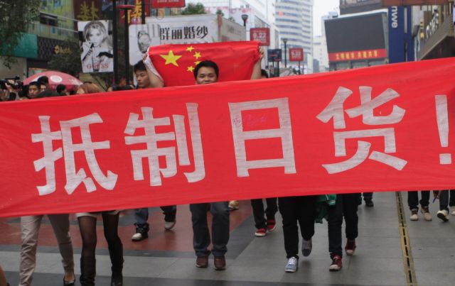 。。中日开始游行大比拼