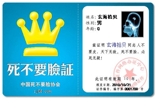QUOTE(玄海拾贝 @ 2010年10月21日 Thursday, 09:03 AM) 他哪里是硕士?只不过为了争取网上声誉罢了!幸亏“玄海拾贝”没有“骂娘”,要么人品真要输给“父母心”了! 3047050 你也谈人品?