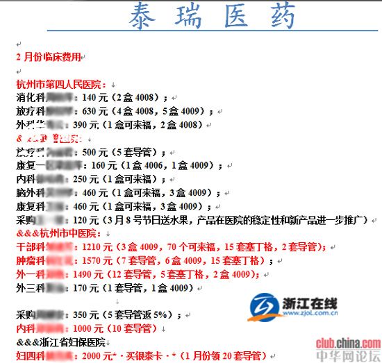 惊爆多家医院数十名医生收受回扣。(下面清单中的XX元就是给医生的回扣费)