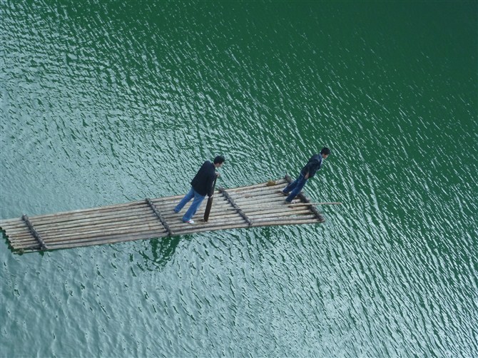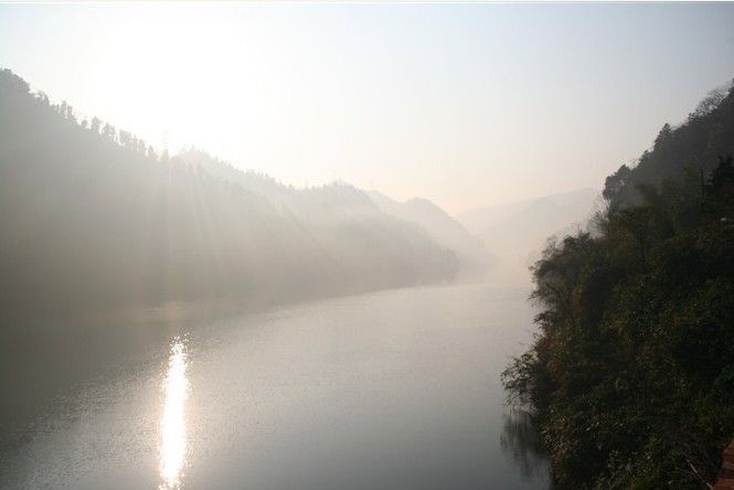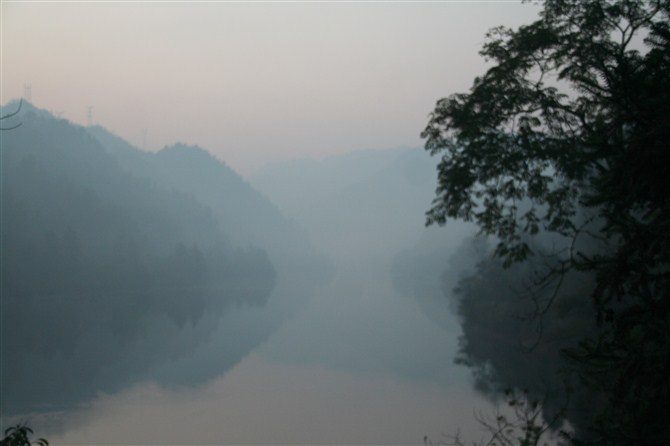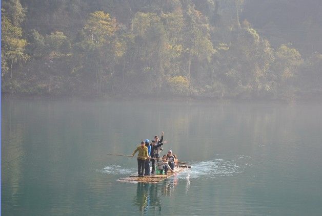 我们稍作休息,继续前往我们的目的地资兴东江湖,早上6点半我们终于到达了期待已久的小东江,小东江长12公里,河流两岸为原始次森林,古藤缠绕。日出之前东江湖呈献出的是一种朦胧美、日出之后会表现出是精细的美。黄山雾、匡庐雾都是山间雾,而小东江的雾罩在水的一方,诡异、神奇,从水面蒸腾而上,飘飘忽忽地在清泠的山水间游荡。雾气间杂着松树的芳香,在拂晓时分把红尘中人的心胸缓缓地搓揉,那些浊气、嚣气和躁气也就慢慢地宣泄于花草丛间。 雾中的小东江,笼罩在一片迷离的烟雾中,书上说,仙人通常能够腾云驾雾,如果你泛一叶轻舟在云雾小东江中穿行,就会觉得飘飘欲仙了。我们急忙吃了早餐后,迫不及待的去乘坐竹排来感受下如此动人的小东江。