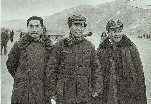 毛泽东、刘少奇、朱德到机场迎接从莫斯科归来的周恩来。