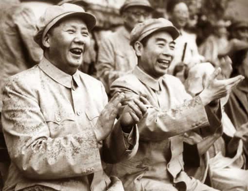 1952年8月,毛泽东和周恩来在解放军体育运动大会上。