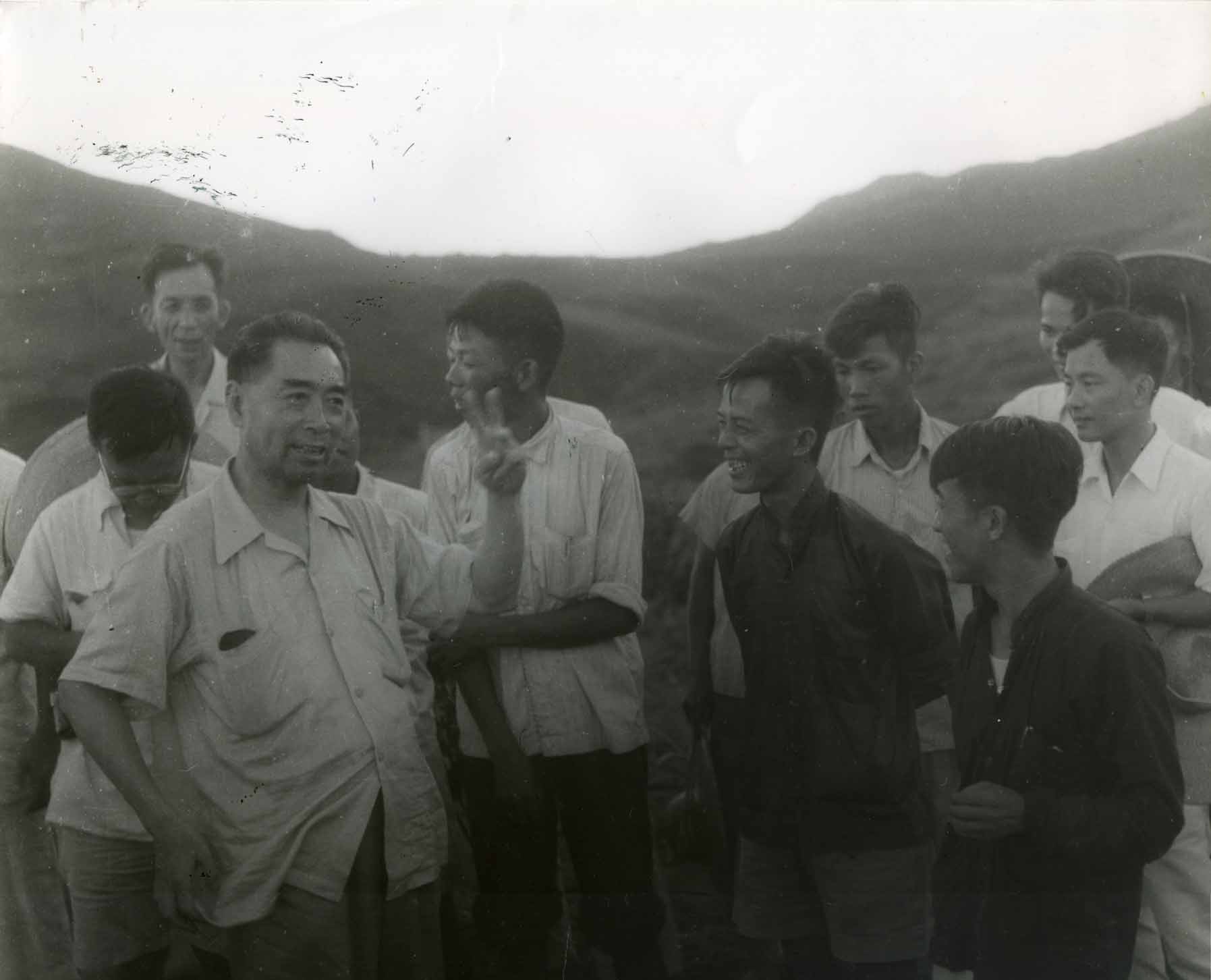 1958年6月,周恩来冒着酷暑到怀柔水库修建工地。