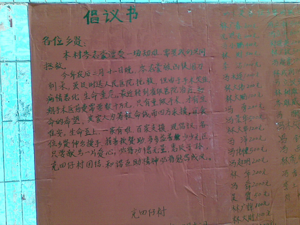 轻 轻风拂乱 荣誉主席 注册 2007-08-23 消息 4,315 反馈评分 10 点数 61 年龄 45 2011-04-12 #7 点击可以放大! 伤者开始是在电白人民医院,后来转到茂名医院,但是都不行,现在又转到广州那边的医院, 需要重新做二次手术才能有保命的可能, 光手术费就要数十万. 如今情况危急, 希望能借助社会力量来挽救一位90后的生命.