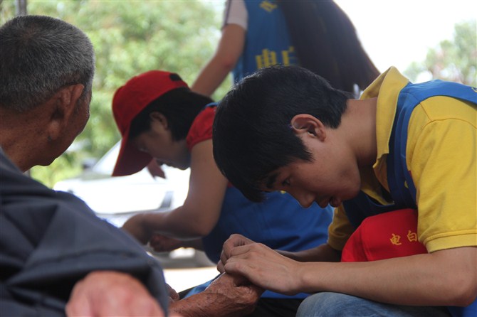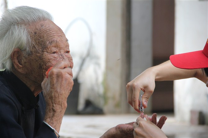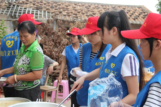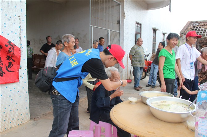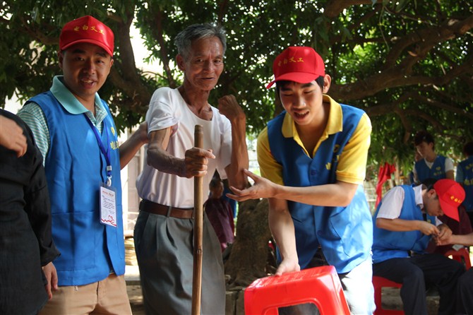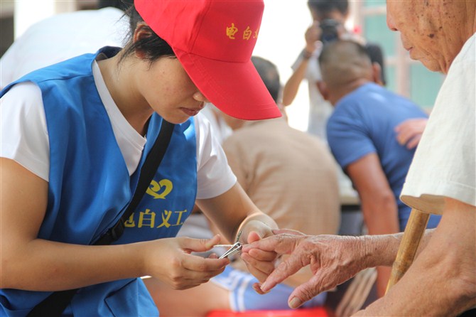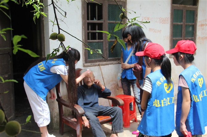 当日中午,经过半个小时的车程,义工们来到安静的林头镇敬老院。该院共有23名老人,其中还有几名行动不便,长期卧床的老人。在院方的协助下,义工们分工合作,有条不紊地帮助老人打扫卫生、修剪指甲、梳剪头发。义工们还与老人们亲切地交谈,了解老人们的身体状况和生活情况。随后,东方医院的医生为全体的老人们做了身体检查,为老人送上了一些日常的用药;下午,义工亲自下厨,为老人们准备晚餐,并与老人们共进午餐。最后,义工与老人合影留念,并与老人们依依惜别。义工此行,为老人们带去了欢声笑语,为他们的生活增加了几分生气,使养老院的老人们度过了一个充实而温馨的下午。电白义工团的负责人告诉记者,他希望更多的人加入到“尊老、爱老”的活动中去,让老人们在温暖与幸福的氛围下安享晚年。