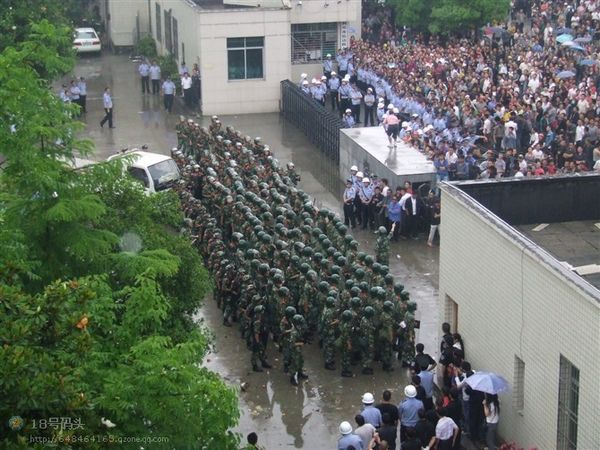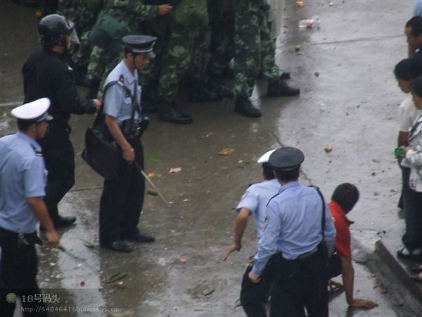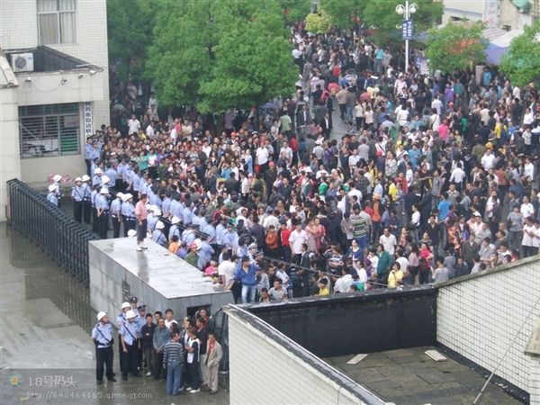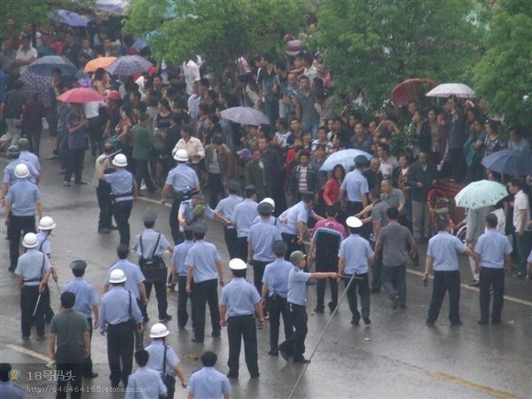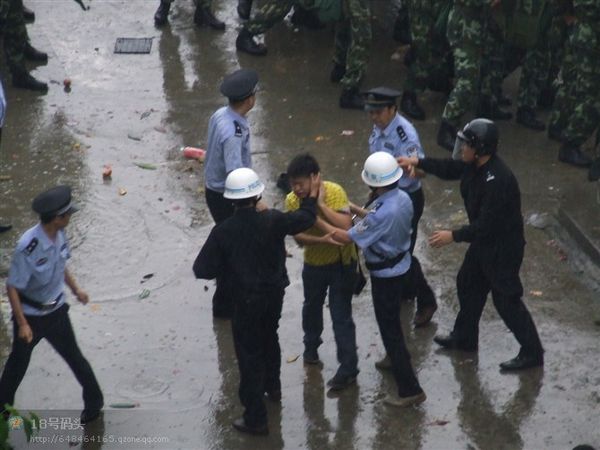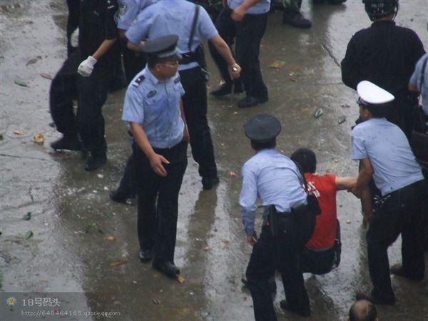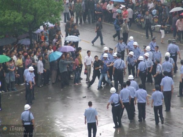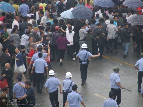 F鱿息指,怒的民n上市政府k公大牵J入市o委李サ霓k公室破模但李已逃去o。武警公安以警棍等s民、拘捕示威者;民t以V泉水瓶、u蛋和s物等簦p方至少凳人受, 20多人被捕,事件至入夜尚未平息。