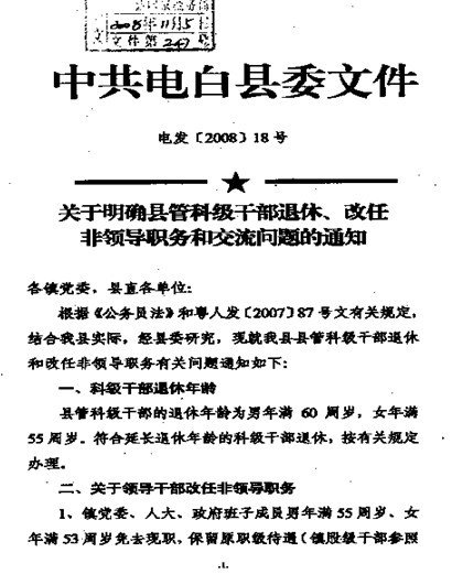 风 风雨同路 副教授 注册 2005-05-07 消息 2,145 反馈评分 16 点数 61 2011-06-19 #11 08年那份文件过时了,早就有最新的文件下了。你可以看到,李亮已经到了改非的年龄了为何还在局长的任上,就是打着那份文件的口号的。电白就是这样。
