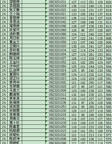 QUOTE(THINKA @ 2011年10月04日 Tuesday, 03:02 PM) 帮我查查!戴清莉的!24班……765531923麻烦了 [snapback]3233900[/snapback] 上面有589分