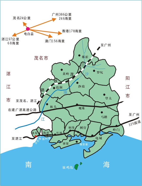 QUOTE(lianwu779 @ 2011年07月24日 Sunday, 01:54 AM) 如果此图是真的,那以后的电白就是这个样子了! 最终水东、陈村、旦场割给茂港,改名为水东区。那现在的茂港区政府很快就荒废了! [attachmentid=266989] [snapback]3186626[/snapback] 一分为三的电白郡,不是两块。