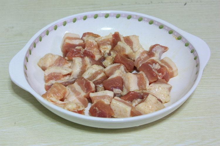五花要去皮,改成1.5CM见方