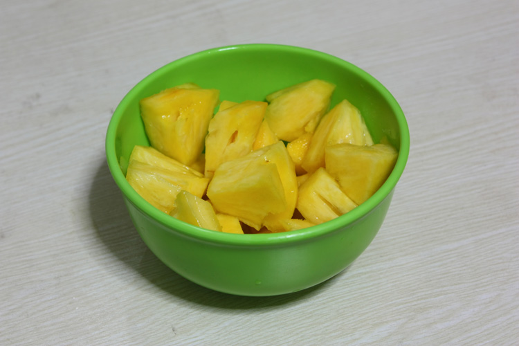 菠萝去掉中间硬芯,切成跟肉块大小的扇形