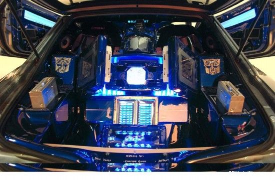 先不提那些BT的发动机、车身和轮胎的改装,这辆由本田1994款 Acura Integra LS改装而成的车内安装了数个DVD播放机, TravelPilot导航系统,美国SIRIUS卫星广播接收器和PS2游戏机等等,最强的是车身后部还藏着个变形金刚。引用Engadget的话说,这车就差地对地导弹了,而我要说,这车就差能变形了。国外改装车Fans的资金和动手能力都很BT啊!