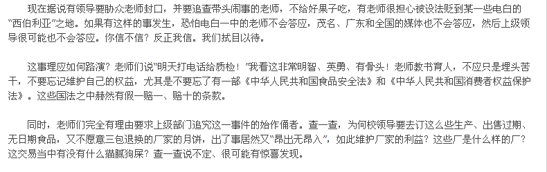 电白一中问题月饼已引起关注,希望一中领导能以人为本,妥善处理此事。否则,问题会越来越严重。 电白领导在出问题之后,最拿手的便是恐吓手下,希望能以此封锁消息。嘿,此招在孔子时代或许有用,但在信息时代特别是网络时代,这招便大失其效了! 相信一中领导不会愚蠢到这个地步!据本人所知,现有好几家媒体正盯着此事,如果一中处理不当的话,则好戏将会不断上演。 相信一中领导能将心比心,而一中教师最终也能讨回尊严。