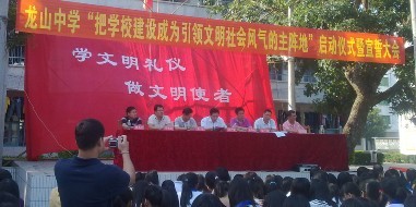 目前,电白县的“电白在前进”系列工程之一“把学校建设成为引领地方文明社会风气的主阵地”的活动已在我全县全面铺开,各中小学纷纷举行启动仪式,师生签名表决心成为文明的使者。 这是昨天龙山中学举行启动仪式的现场图片。 会上,县局与镇委领导临场指导,学校领导及全体师生参加大会。