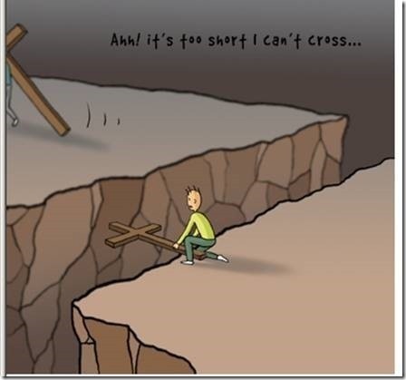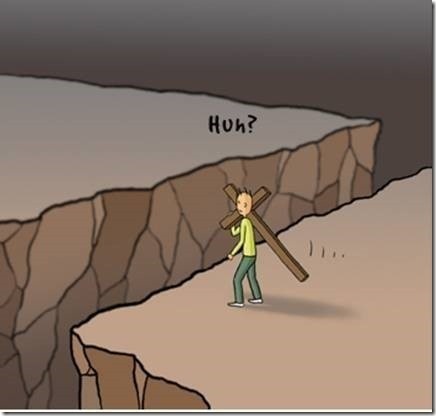 后面的人都慢慢地赶上来了,他们用自己背负的十字架搭在沟上,做成桥,从容不迫地跨越了沟壑。