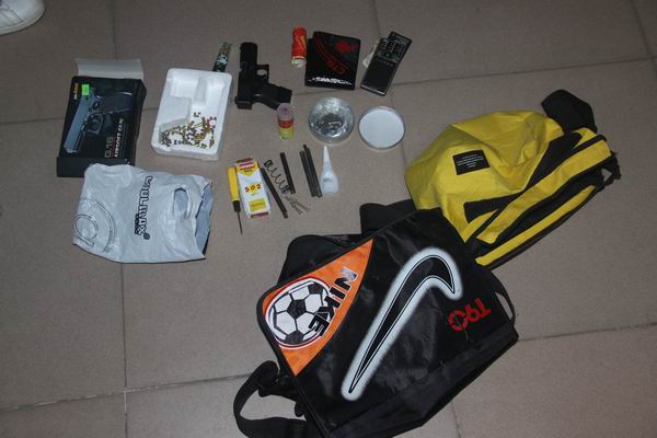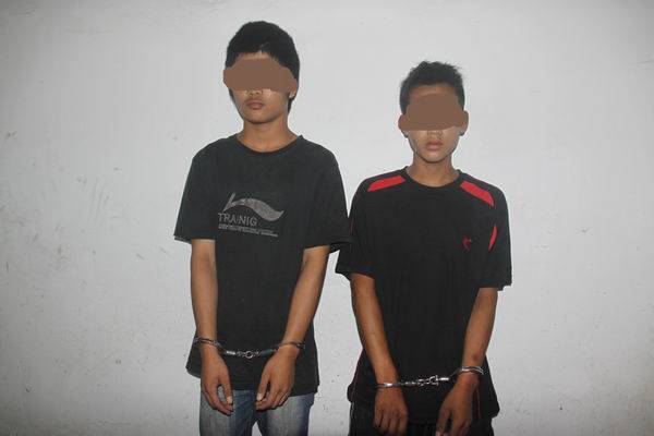 10月21日晚,县公安局交、巡警联合在水东镇迎宾大道设卡查车。20时50分许,2名男青年骑着摩托车往县城方向行驶,行至交通局路段时,发现警察在设卡查车就掉头逃跑,该摩托车在掉头时翻车后,两名男青年立即带着身上两个布袋子弃车逃跑,设卡民警发现情况后立即追捕,成功将该两男青年制服,当场在他们身上缴获仿真手枪一支,子弹若发,螺丝刀等物品。经初步了解,2名男青年是准备到县城实施抢劫的。犯罪嫌疑人彭某华,男,16岁,电白县博贺镇莺沟5号人;邵某生,男,15岁,电白县电城镇湿水田垌村人。案件正在审理中。