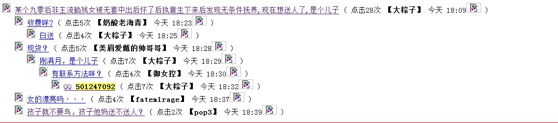 此事件真假真的难以辨别,但楼主QQ今天出现过在“鼎盛论坛”里面,主帖已被删除,只能查也一样是讨论孩子送人的事情。 [attachmentid=283058] 查询由于主帖被删,只能手段查询到样有限的资料,供大家辩真假!!
