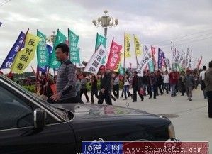 数千村民到达市政府广场后,村民有序地坐在地上等待,而进入广场的几条路均被警察XX,包括媒体记者也无法进入。村民表示,早上11点10分左右,**出来接了农民代表递交的诉求书,称会尽快解决农民关于土地被盗卖的诉求,最后游行队伍和平的散去。