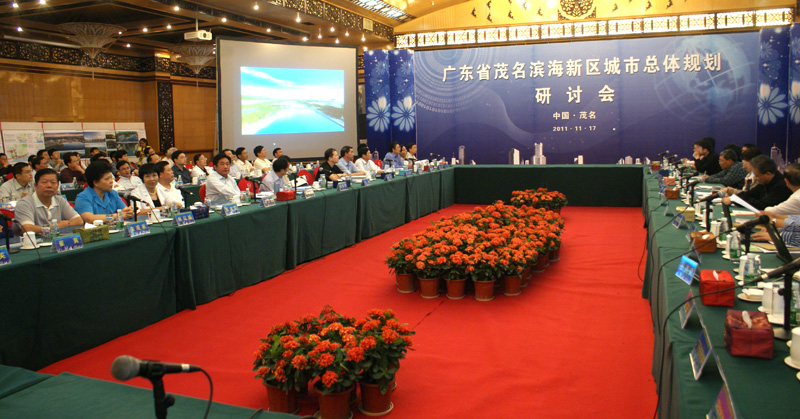 研讨会上,广东省城乡规划设计研究院、上海同济城市规划设计研究院和广州亚城规划设计研究有限公司等6家参选单位的负责人,先后通过投影演示对本单位的规划方案进行解说。分立于会场四角的四幅4米×3米的投影幕上,一个个规划方案体现了先进的理念,描绘出广东省茂名滨海新区未来发展的宏伟蓝图,气势恢宏,魅力无限,引人入胜,让人心潮澎湃,充满憧憬与神往,仿如身临其境、置身其中。如广东省城乡规划设计研究院的方案坚持“魅力、共生、流畅”理念,以广东面向泛珠三角及东盟开放的重要门户为定位,打造世界级石化产业基地、先进制造业基地及新兴产业基地、粤西重要的区域性航运物流中心和交通枢纽、滨海旅游胜地,建设成为现代化国际滨海宜居新城和广东理想新城建设示范区;上海同济城市规划设计研究院&广州亚城规划设计研究有限公司的方案坚持“海韵绿城”理念,以世界级石化产业基地、中国西南最便捷出海大通道、广东滨海旅游度假胜地、粤西综合交通枢纽中心为战略定位,打造生态文明的低碳新区、智慧型的宜居滨海新区、绿色环保的石化产业区、现代海洋农业经济区。