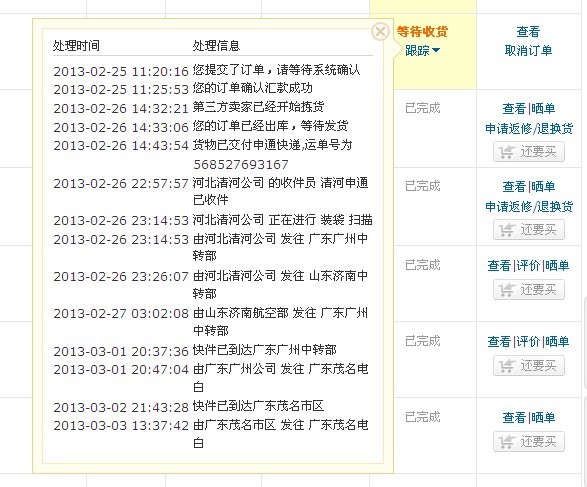 问了,就差我的没有通知,我这个要自提的。